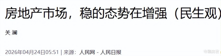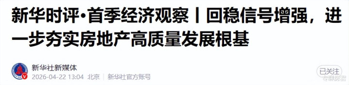 仅仅两天后,4月22日,新华社发文跟进,将市场判断再往前推进一步,明确这并非简单的短期回稳,而是楼市历经深度调整后,正在积蓄筑底回暖的底层势能。文章更从经济运行和民生福祉的底层逻辑,定调房地产市场平稳发展的重要性,同时指明方向:要兼顾短期稳定市场和长期健全机制,通过精准举措推动房地产向高质量发展转型,让回暖的势头能持续、能落地。
